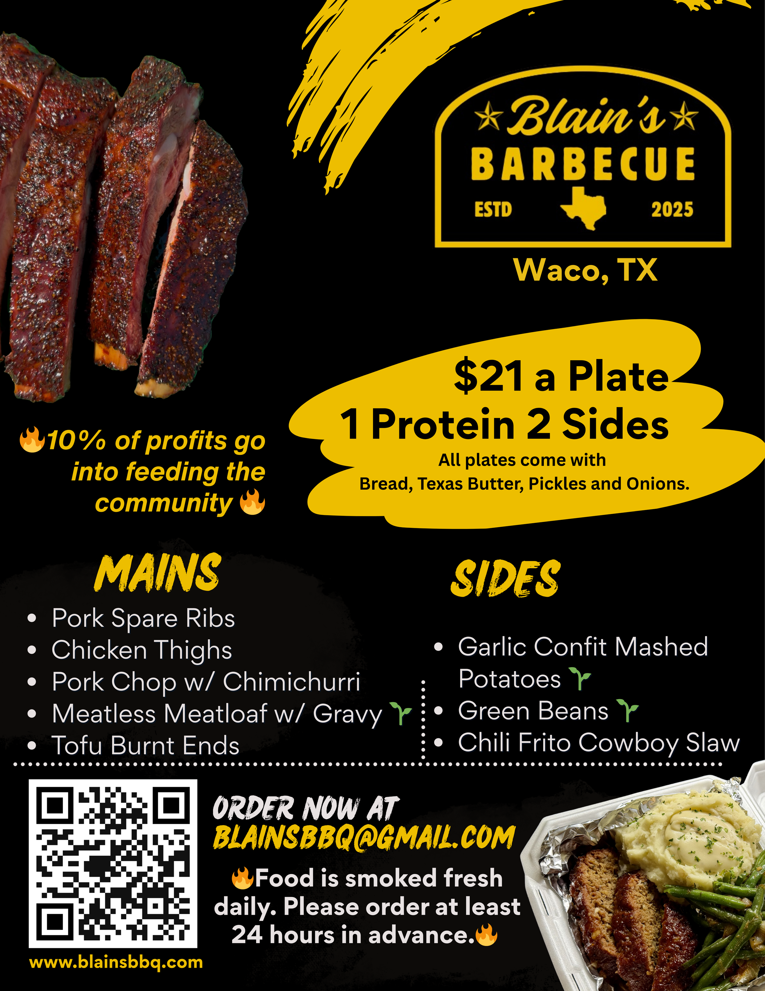 MERCH Gofundme Email BLAINSBBQ@gmail.com to order! Waco, TX pickup or deliveryBBQ is cooked fresh daily, Thursdays-Sundays! Please try and order 24 hour in advance